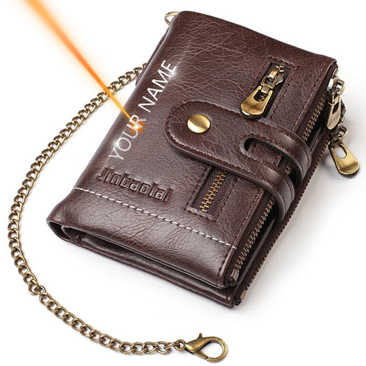 Men Wallets Name Customized PU Leather Short Card Holder Chain Men Purse