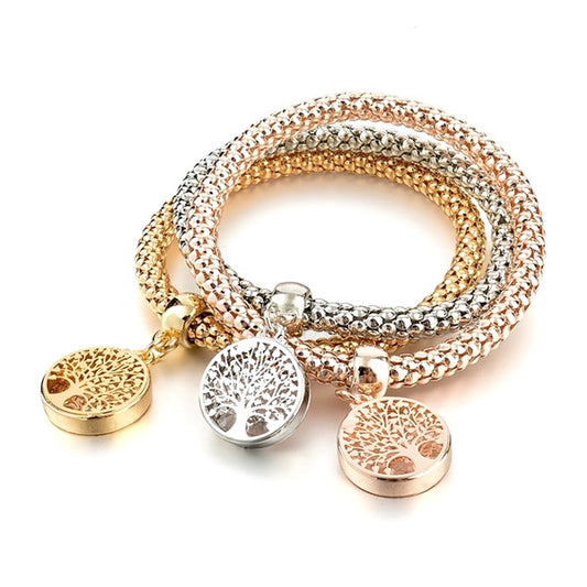 Austrian Rhinestones Tree of Life Charm Mesh Bracelet Set