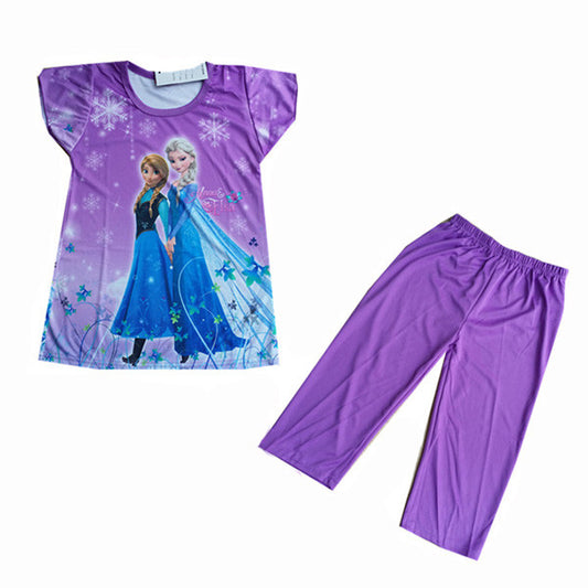 2016 Children Clothing Elsa Girls Pajamas Set Short sleeve Cotton Girl Pyjama Pijamas Kids