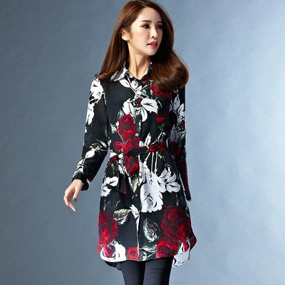 Women Long Shirts 2016 Spring Autumn Top Floral Print Blouse Shirt European Style Ladies