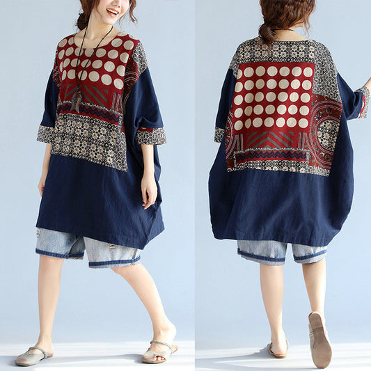 Women Summer T-Shirt Plus Size Cotton Linen Polka Dot Female Batwing Tops 2017