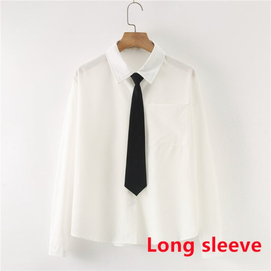 Women Summer Blouses Shirt Short Sleeve Solid White Tops With Tie