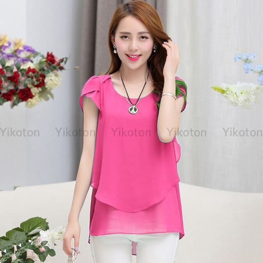 Yikoton 2021 New Summer Women Blouse Loose Shirt O-Neck Chiffon