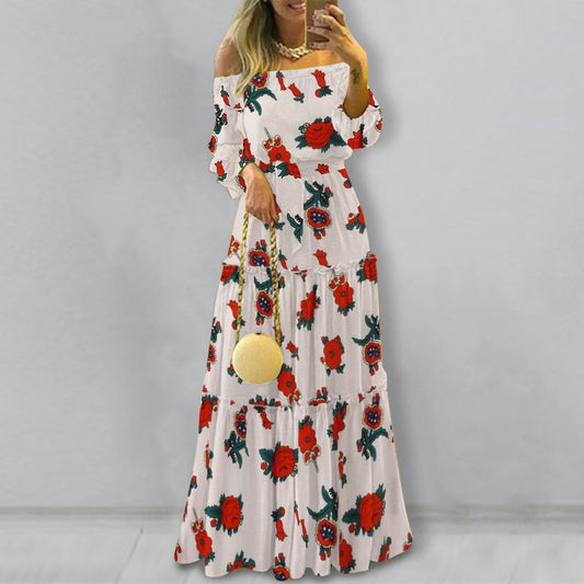 ZANZEA Fashion Summer Maxi Dress Women's Printed Sundress Casual Short Sleeve Vestidos Female High Waist Robe Femme