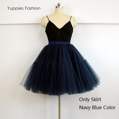 Yuppies Fashion 5 Layers Summer Tulle Skirt Vintage Midi Tutu Skirt Pleated Skirts Womens