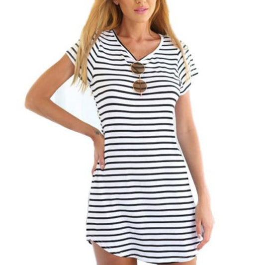 ZANZEA Summer Style 2016 New Women Dress Casual Loose Black White Striped Dresses
