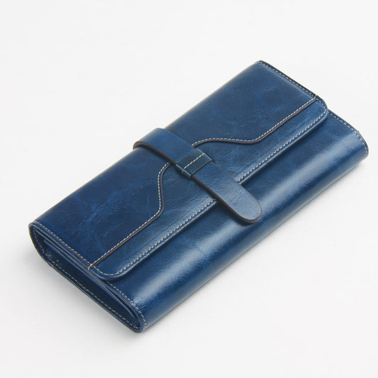 100% oil waxing cowhide wallet for women Long designer multi-card wallet holder women leather genuine purse free shipping