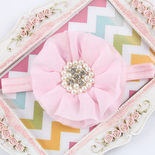 16Clrs New Fashion Hot children kids Baby girls pearl diamond chiffon flower Headband