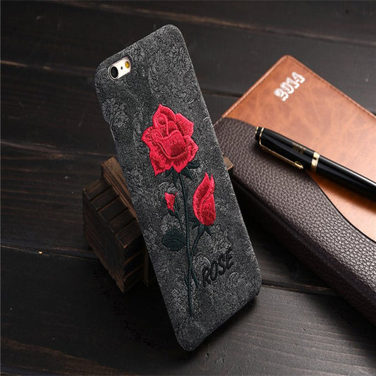 For iPhone 7 6S Fashion Rose Embroidery Retro Case For iPhone 7 6 6S Plus Hard Art Handmade Flower