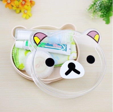 Soap Box Cartoon Portable Mini Travel Set Wash Soapbox Toothbrush Toothpaste Towels Set