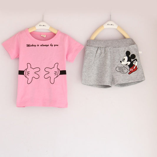 Cartoon Print Cloth Sets Summer Baby Boys Girls T Shirts + Casual Striped Pants Suit 2PCs Hot