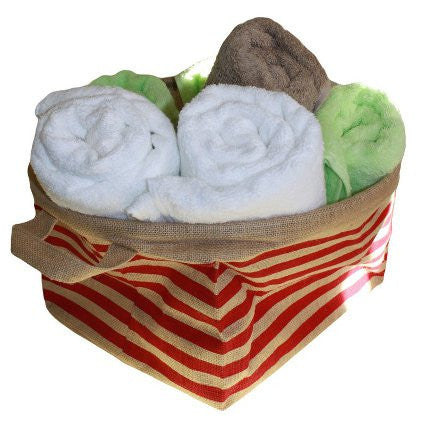Big Jute Stripy Basket - Red