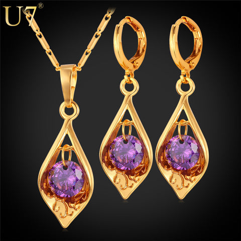 U7 Luxury Cubic Zirconia Jewelry Set Gold Plated Purple Crystal Jewelry