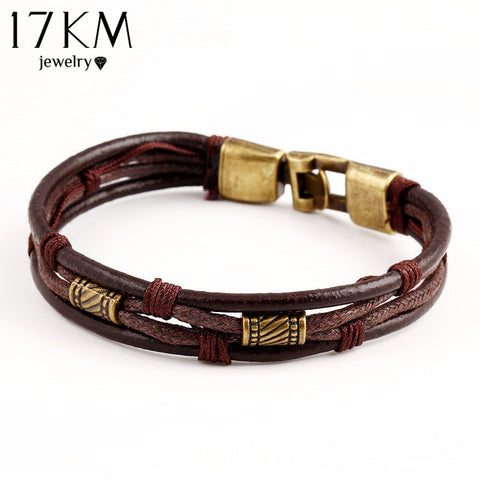 Geometric Pattern Multi-layer Accessories Black Men's Leather Bracelet Luxury Jewelry Valentine's Day Gift Free Shipping