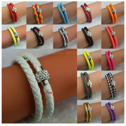 Hand-woven polymer clay magnet clasp white diamond snake bracelet double PU leather factory direct supply of foreign trade