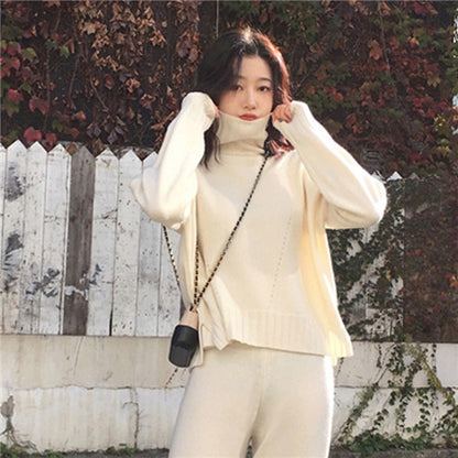 CBAFU autumn spring knitted tracksuit turtleneck sweatshirts women suit clothing