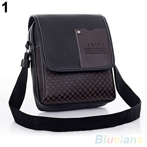 Fashion Men's Faux Leather Grid Cover Briefcase Crossbody Messenger Shoulder Bag
