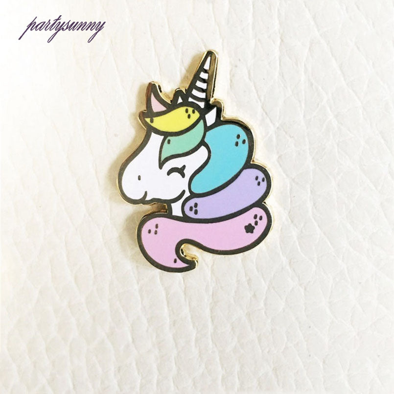PF Childlike Cartoon Brooch Charm Unicorn Badges Enamel Pin Clothes Dress Bag