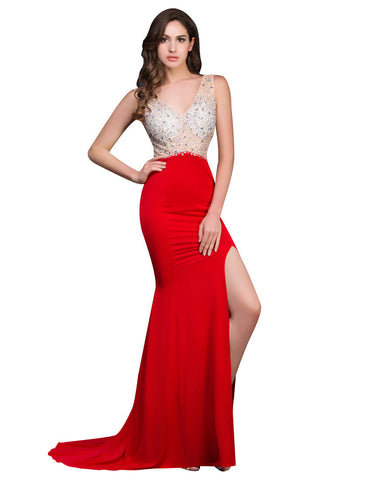 2016 New Design Grace Karin High Slit Sparkly Mermaid Evening Dresses Backless