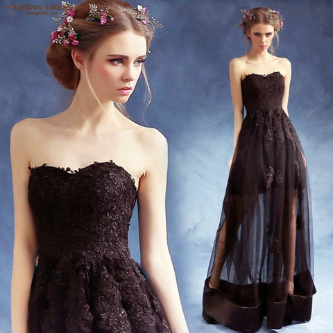 Black Champagne Off Sshoulder Appliques Lace Long Evening Dresses