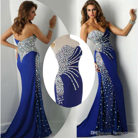 Abendkleider Sweetheart Mermaid Crystal Royal Blue Chiffon Long Evening Dresses
