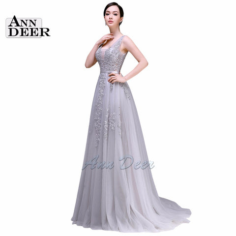 ANN DEER 2016 Hot Sale Sexy A-Line V-Neck Backless Tulle Long Evening Dress