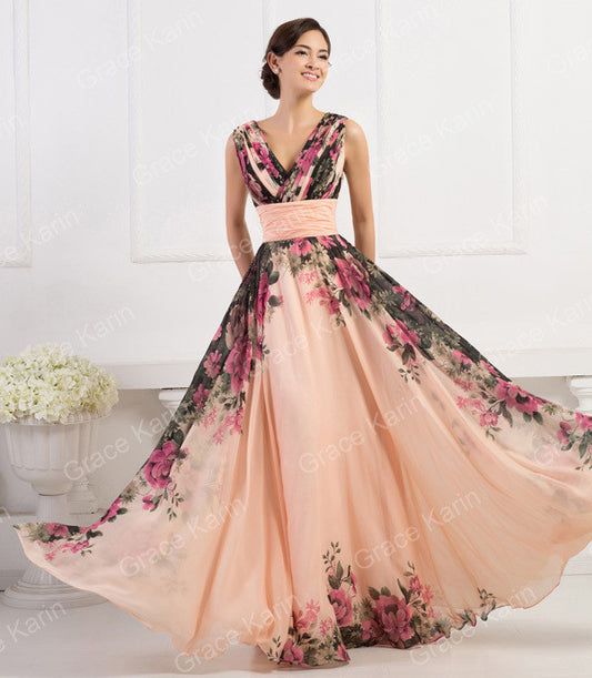 2016 New Halter Floral Print Evening Dresses Flower Pattern Chiffon Floor