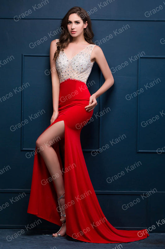 2016 New Design Grace Karin High Slit Sparkly Mermaid Evening Dresses Backless