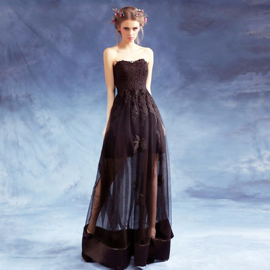 Black Champagne Off Sshoulder Appliques Lace Long Evening Dresses