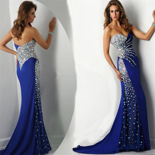 Abendkleider Sweetheart Mermaid Crystal Royal Blue Chiffon Long Evening Dresses