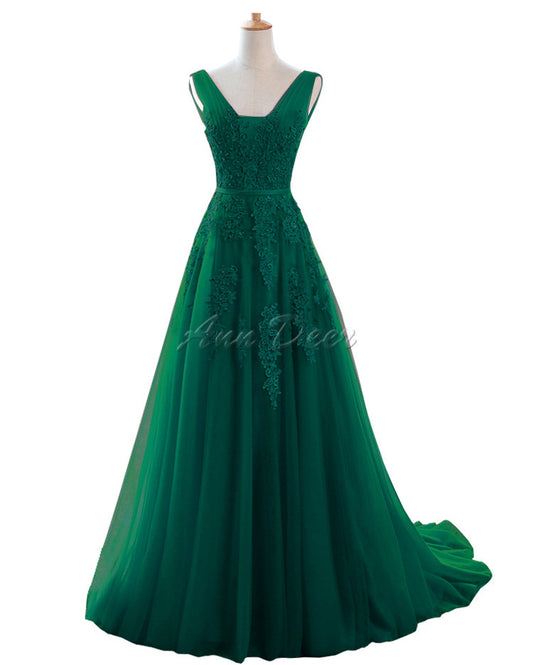 ANN DEER 2016 Hot Sale Sexy A-Line V-Neck Backless Tulle Long Evening Dress