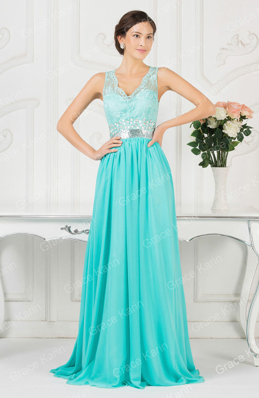 Evening Dress Abendkleider 2016 Grace Karin Long Turquoise Dresses Backless