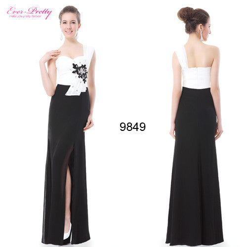 Evening Dress HE09849WH Long Black and White Rhinestone Flower Maxi Formal Elegant Party One Shoulder 2016