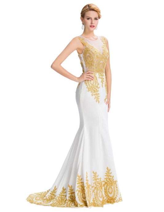 Grace Karin Popular Ball Gown Elegant Lace Evening Dresses Long Champagne White