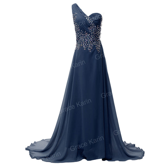 Grace Karin One shoulder Elegant Long Navy Blue Evening Dresses Purple Pink