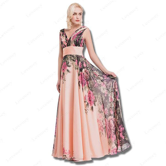Party Dresses Ever Pretty HE09989 Chiffon V-neck Elegant Fashion Plus Size Prom Long Evening Party Gown Dresses