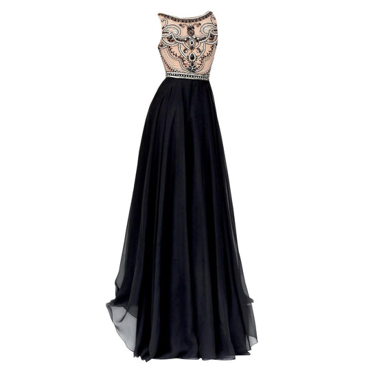 Real Photo Formal Gown See Through Back Beading Handwork Chiffon Prom Long Evening Dresses OL102830