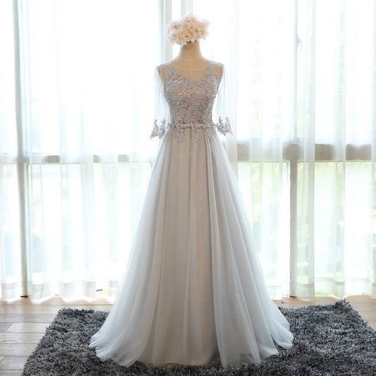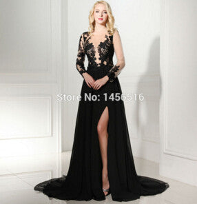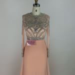 Real Photo Formal Long Sleeves Gown See Through Back Beading Handwork