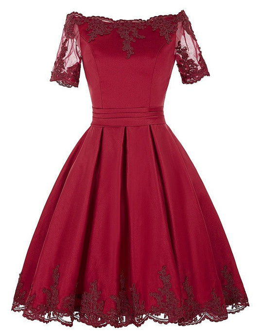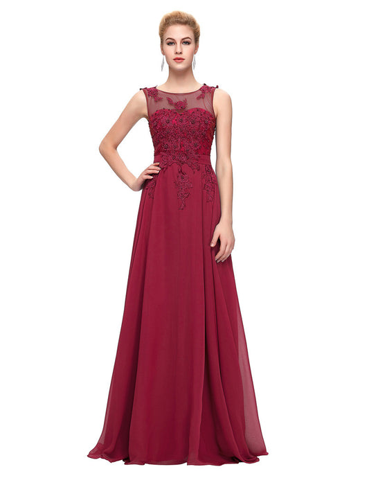 R14 Free Returns Elegant Wine Colored Evening Dress With Sleeves Appliqued Tulle