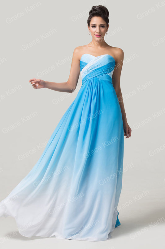Ombre Evening Gowns Abendkleider 2016 Colorful Grace Karin Lace Up Strapless Chiffon Elegant