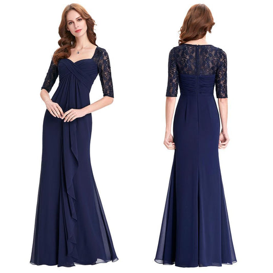Real Photo Half Sleeve Evening Dress 2016 Ruffles Chiffon Mother of the Bride Dresses Navy Blue Long Dress Evening Gowns 0136