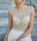 Real Photo Nude Color Tulle Chiffon Fabric See Through Beading Handwork Long Prom Dress OL102363