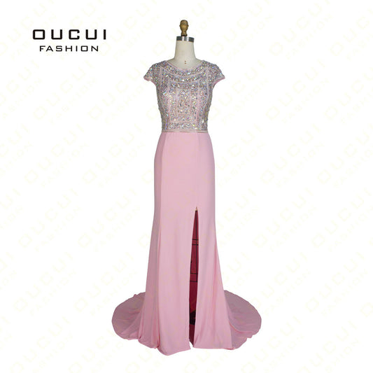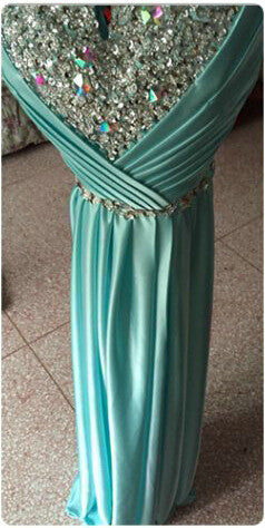 Real Photo Long Evening Dress Gown Illusion See Through Back Crystal Beaded Jersey