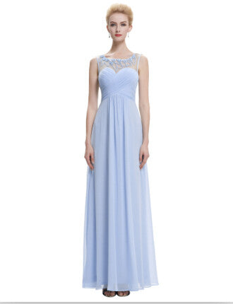 Strazz Sleeveless Crew Neck Chiffon Long Evening Dress 2016