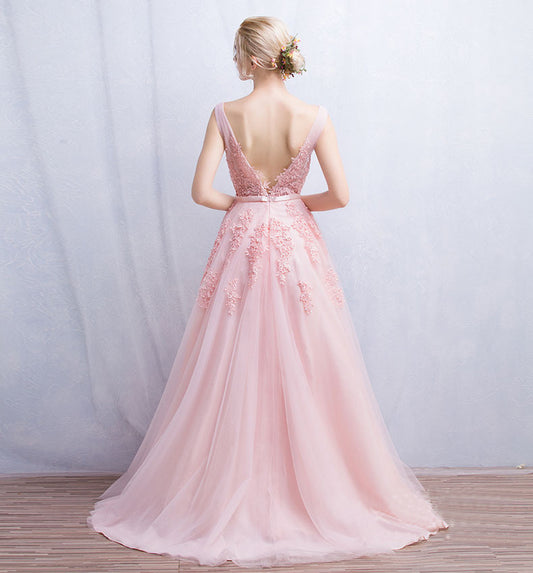 Vestido de festa New Coming Robe De Soiree V Neck with Lace Appliques Long Tulle Party