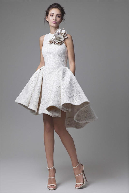 Vintage High Low Prom Dresses Jewel Sleeveless Lace Krikor Jabotian Evening Dress