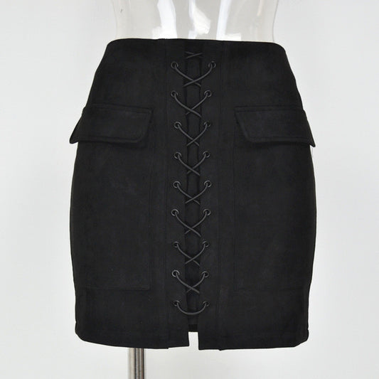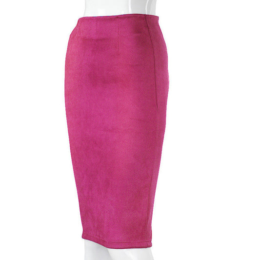 Women Skirts Suede Solid Color Pencil Skirt Female Autumn Winter High Waist Bodycon