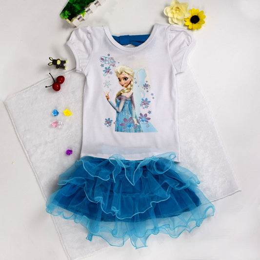 2016 Girls Clothes Elsa Dress Princess Children Clothing Set Kids T-shirt Tops