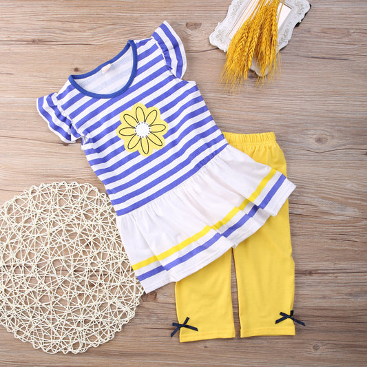 2016 Brand Girl Summer Clothing Sets Girls Fashion Striped Clothes Set