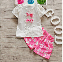 2016 fashion toddler baby girls summer clothing sets bow 2pcs girls summer clothes